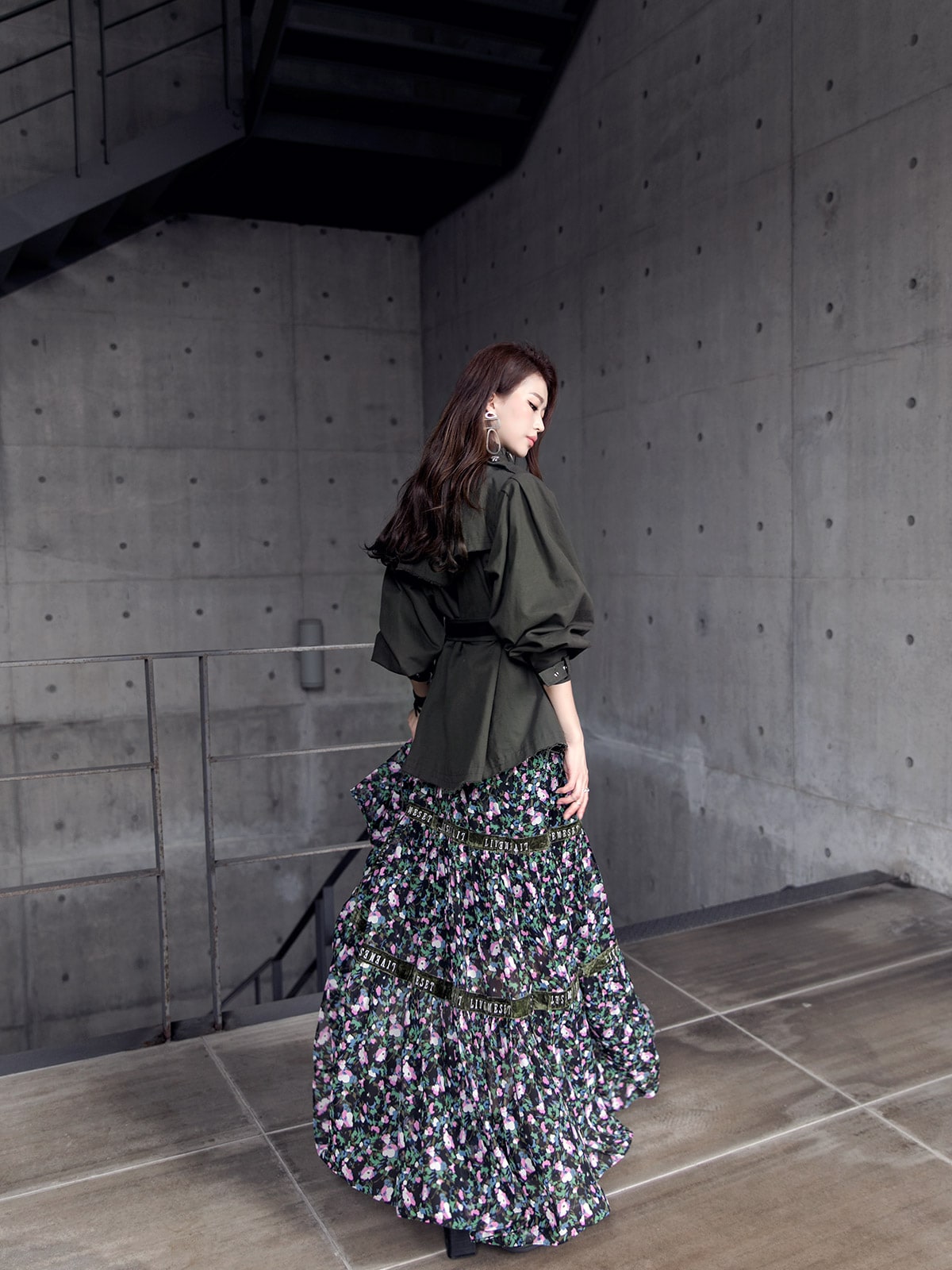 SK1773 플라워링 맥시 레이스 스커트 Black mix