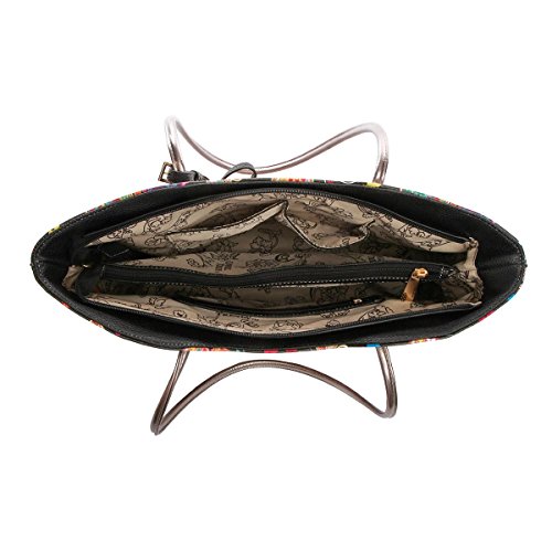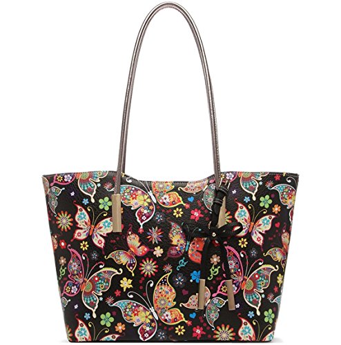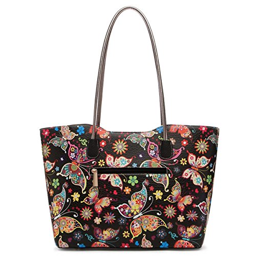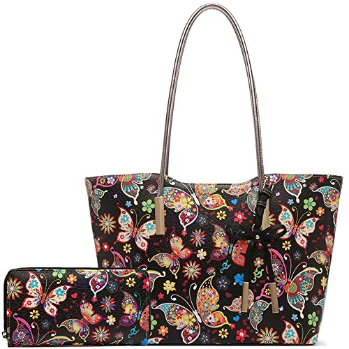 Fashion Colorful Butterfly Flower Shopper Totes Bowknot Women Purse Handbag Shoulder Bag Wallet Set Black