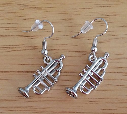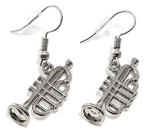 Trumpet earrings, Music earrings, Musical Instrument earrings. Silver Tone Metal Charms, Zinc alloy
