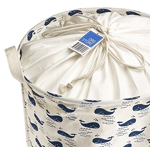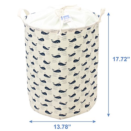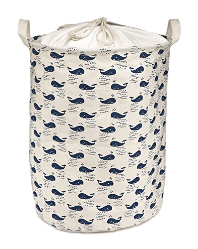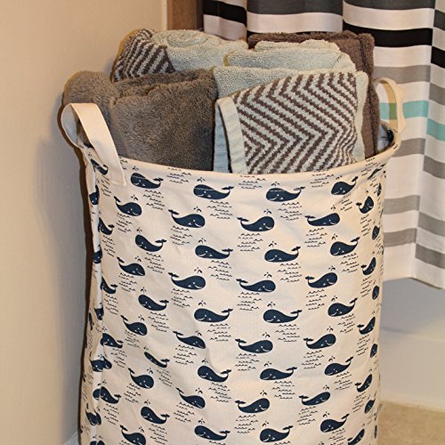 Org Store Cotton Fabric Collapsible Laundry Basket Dirty Clothes Hamper - Perfect for College Dorms, Kids Room & Bathroom - Whale Patterned