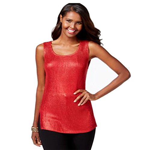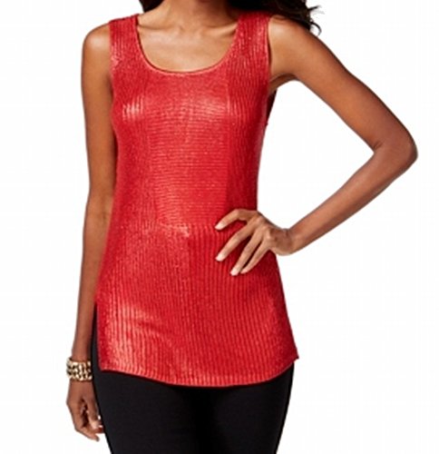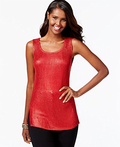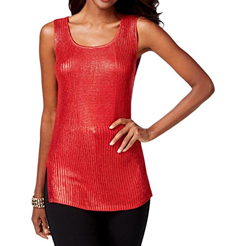 Inc International Concepts Sleeveless Metallic Sweater Medium Red