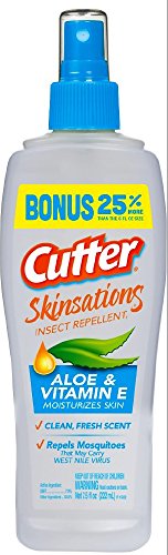 Cutter Skinsations Insect Repellent Pump Spray repels mosquitoes that may contain the West Nile Virus. Cutter Skinsations Insect Repellent Pump Spray contains aloe and vitamin E to moisturize skin. The formula is not greasy or oily, and it has a clean, fresh scent. The 360 degree spray pump sprays at any angle.Feature