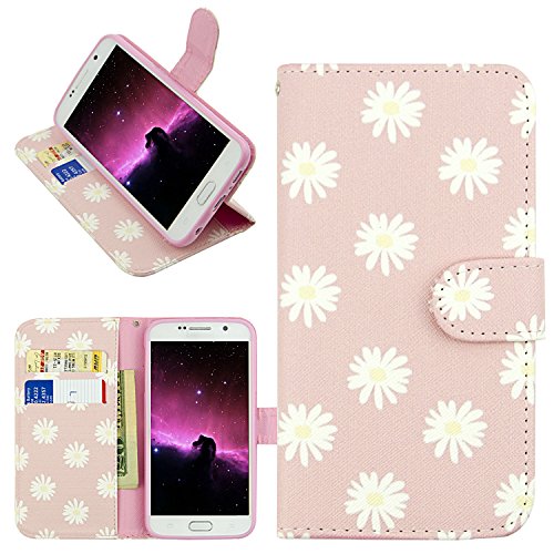 Galaxy S6 Case, Wallet Case Dimaka Cute Floral Pattern PU Leather Folio [Cash Cards Slots Compartment] [Flip Kickstand] with Strap Hole Protective Purse Case for Galaxy S6 (Not Edge) (Cashew Spiricle)