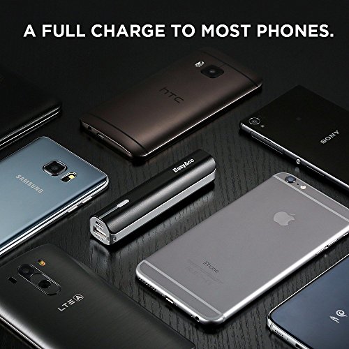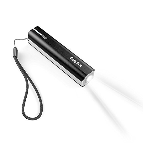 EasyAcc Ubright 3350mAh Power Bank 2.1A Output Portable Charger Lipstick External Battery Pack with Bright Flashlight for Smartphones -Black Silver