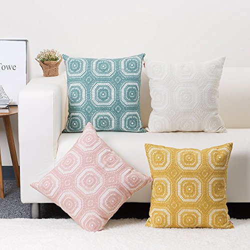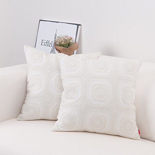 baibu Embroidered Cushion Cover Unique Pattern Designs Throw Pillow Cover White