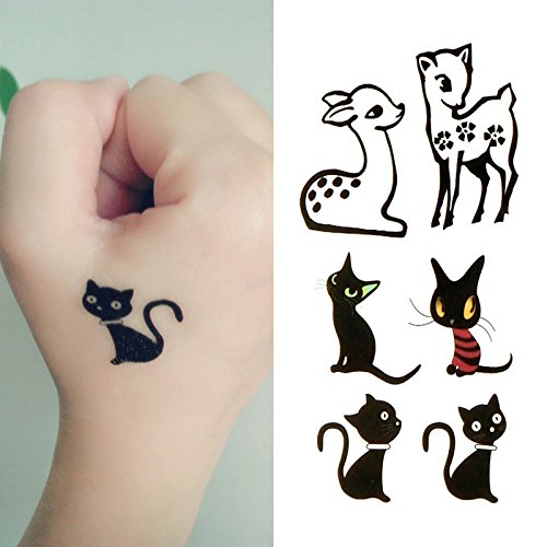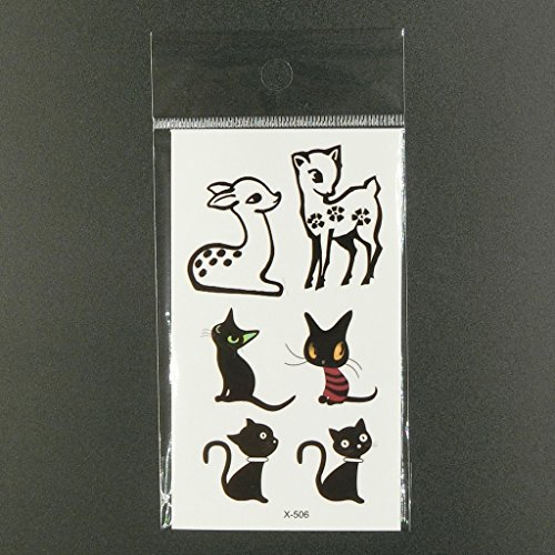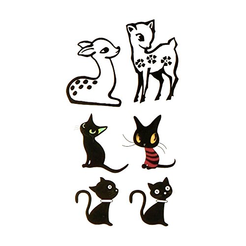 Oottati Small Cute Temporary Tattoo Sika Deer Cat (2 Sheets)