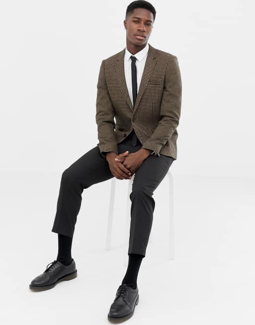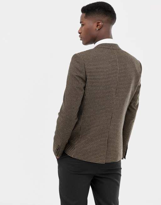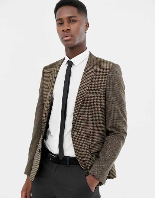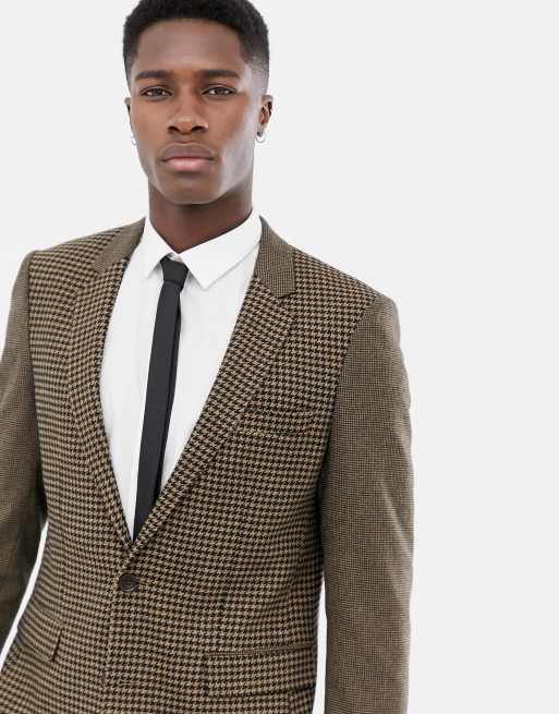 ASOS DESIGN slim blazer in wool mix with tan cut and sew check