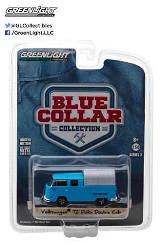-. Title : Volkswagen T2 Doka Double Cab with Canopy, Blue - Greenlight 35060/48 - 1/64 Scale Diecast Model Toy Car