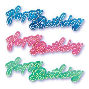 Happy Birthday Small Jewel Scripts Assorted Colors Decorating Cupcake/Cake 12 Pack