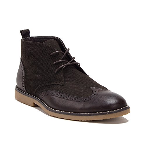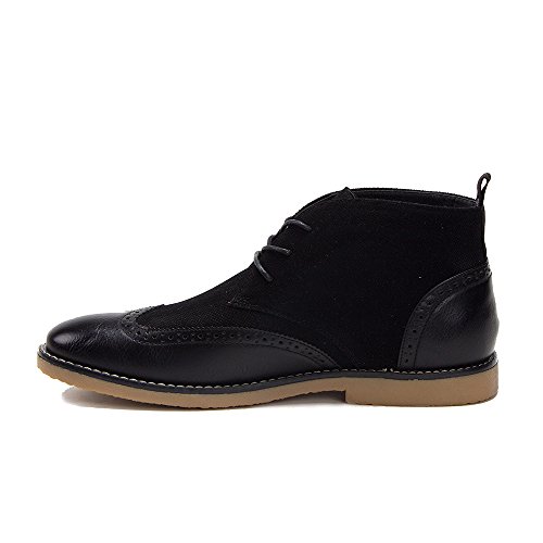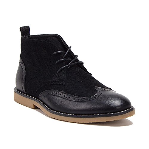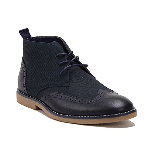 Product Description A classic design with a modern take! These mens ankle boots are a must have this season with it's classic wing tip design, perforated semi-brogue details and combined denim-like contrast! 0
