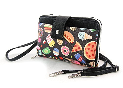Studio : Zeckos Publisher : Zeckos Binding : Apparel Product Description If you're hungering for a handbag that's a little different and can carry your phone in too, then organize your things inside this delicious looking wallet featuring all your favorite things like rainbows, unicorns and yummy junk food! It's constructed of textured vinyl with a snap front pocket that fits phones up to 3.5 x 6 inches, and a fabric lined interior with 4 open pockets, 6 card slots and a zippered change pouch inside. It includes a detachable strap with an adjustable 12-24 inch drop to give you more than just one way to carry it, and the wrap around zipper closure makes sure you don't lose anything. This 7.25 inch long, 4.5 inch high, 1 inch wide favorite things phone purse shows you have a style all your own and lets you express your unique style to the world. 0