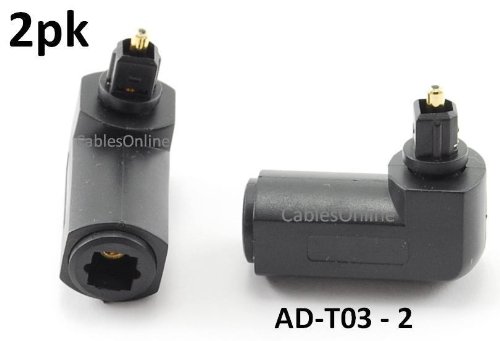 CablesOnline 2-PACK Right Angle (90 Degree) Toslink Digital Optical Audio Adapter (AD-T03-2)