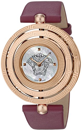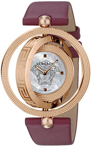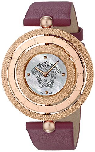 When Versace introduced their magnificent this Eon timepiece it quickly became an instant classic. The iconic design is resplendent with Versace imagery, including the famous Versace Medusa head in middle of the case. Featuring two reversible bezels engraved with Versace and Greca emblem including the Clouse de Paris finish this watch is a triumph. This timepiece is powered by an ISA K62/132 Swiss Quartz movement to enable its preciseness wherever you go. The fashionable mother of pearl dial with four dot indices and a rose gold IP stainless steel case together with its maroon satin on genuine calfskin band give this watch an exquisite look. If you'd like to maximize the enjoyment you get from wearing a fine timepiece, you need to experience the delicate baroque beauty of an Eon on your wrist.
