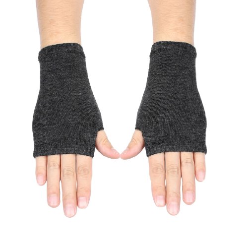 (Allegra K)/Accessories/Cold Weather Accessories/DIRECT FROM USA/Women Dark Gray Acrylic Fingerless Elastic Mitten Knitted Gloves Pair