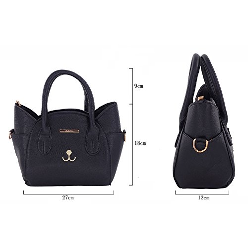 -. Feature : [FASHION STYLE] Beautiful streamlined stitching outside and fully lined interior with silky fabric, special cute cat design, presented a elegant and perfect looking. 3 ways to carry it: top-handle/crossbody/single shoulder as long as you attach the removable and adjustable shoulder strap. It is also a awesome gift for family and friends / [GREAT CAPACITY] Two Outer Pocket on the sides for keys/small items. The interior contains a main compartment with one zipped pockets on one side and one open slots on the other side for keys/phone/cards. This handbag can hold up your all daily necessities / [MATERIAL] We use the artifical(PU) for this bag, soft, comfortable, vintage, safe, odorless and high-end, when you touch the bag, The lining is durable and smooth, not easy to wear or tear. Generous and elegant, and have a removable and adjustable shoulder strap / [CARE INSTRUCTION] Keep it in a dry, cool and ventilated place; Avoid exposure to chemicals, spikes and hot place; Clean it with dry soft cloth when got stains / [Dimensions] 10.63"L x 7.08"H x 5.1"W, Handle long 3.5",fit up to your phones. perfect for gym, school, travel, hiking, storage and more