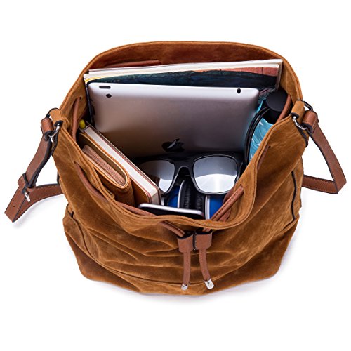 -. Feature : -Autumn 2017 color trend, fashion color designed suede bucket / FAUX leather,Drawstring closure,Durable Handbag: These bags are made of superior quality faux leather & durable polyester lining, to ensure that the whole shoulder bag is securely covered. / HOBO Style: The color of the Shoulder Bag hides stains well and goes nicely with jeans or work clothes. Simple design style makes it match your apparel easily & suits many occassions. / High Capacity: very durable,and holds everything you need, including your iPad, iphone, cosmetic, umbrella, keys, wallet, sunglasses, lipstick ,facial tissue and other stuffs. / Multiple Functionalities: It will organize your daily essentials neatly in place, the bag comes with a shoulder strap, can be transformed into handbag, shoulder bag, cross-body, messenger bag and more.