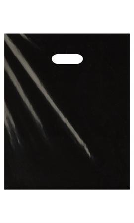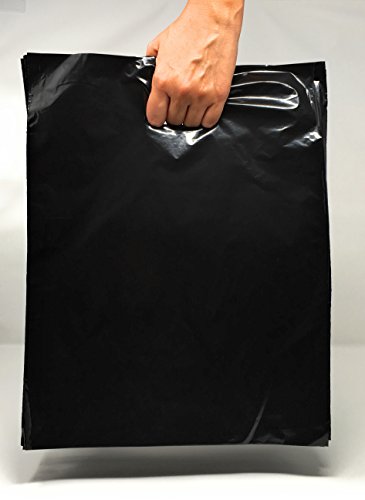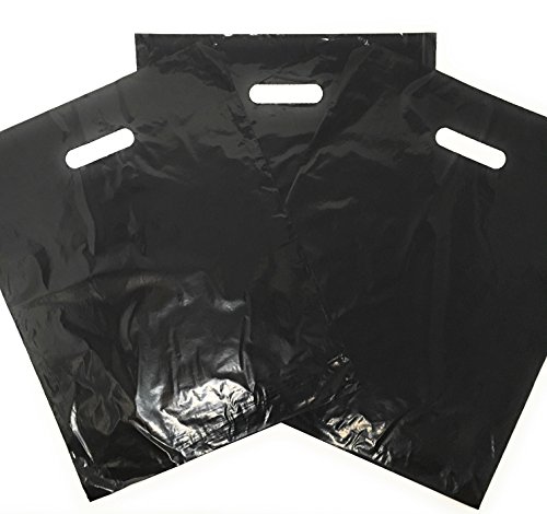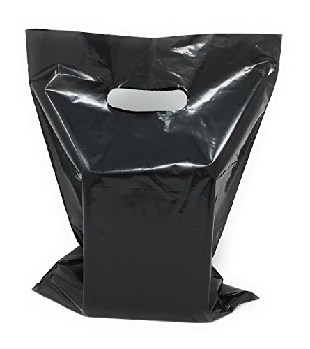 100 Pack 12" x 15" with 1.25 mil Thick Black Merchandise Plastic Glossy Retail Bags | Die Cut Handles | Perfect for Shopping, Party Favors, Birthdays, Children Parties | Color Black | 100% Recyclable