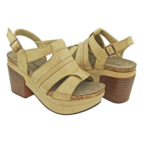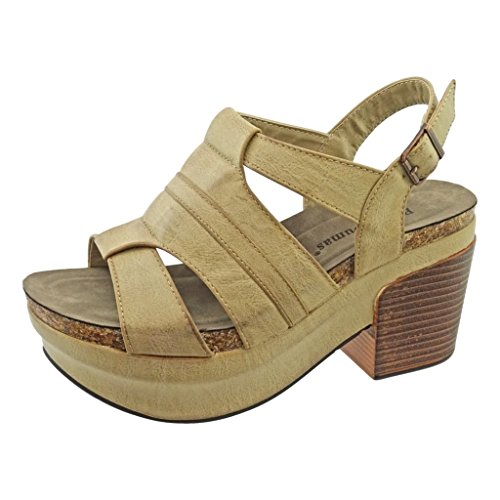 Binding : Apparel Product Description You will love these adorable chunky heel platform sandals from Pierre Dumas! The modern styling of the Luann-2 features vegan leather straps, molded faux cork footbed and a fun and flirty chunky stacked heel. Adjustable ankle strap ensures a comfortable fit. Platform measures 1.5"; heel measures 3". All manmade materials. 0