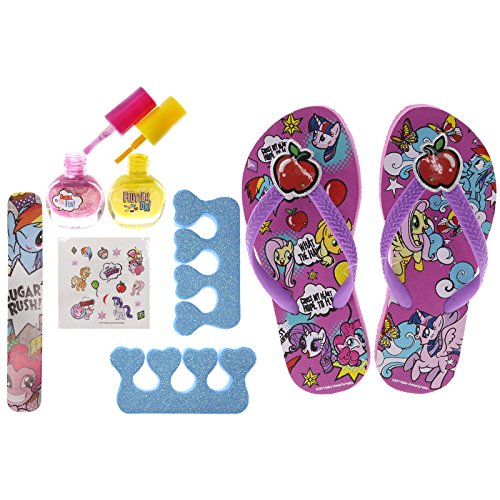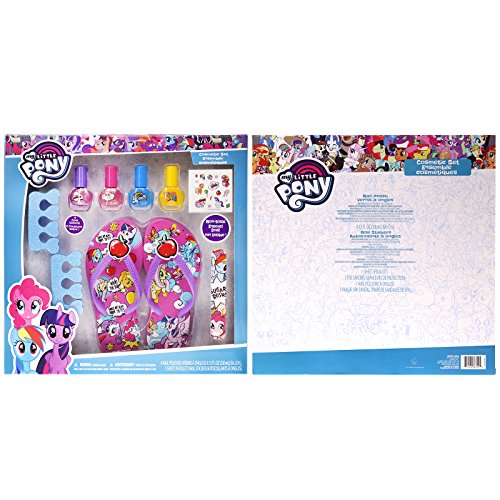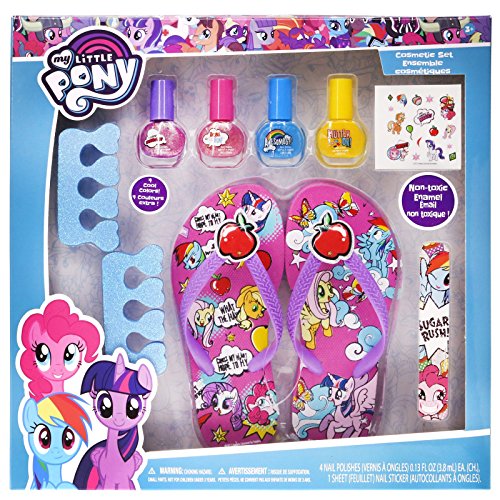 Studio : TownleyGirl Publisher : TownleyGirl Binding : Health and Beauty Product Description Treat your child to a day at the spa with My Little Pony. This set comes with a nail buffer, nail file, 4 different colors of nail polish, nail stickers, two toe separators, and a pair of adjustable pedicure sandals. The water-based, non-toxic polishes keep harmful, carcinogens and chemicals away from your kids and out of the environment. Perfect as a birthday party or holiday gift. See images and bullets for more details. 0