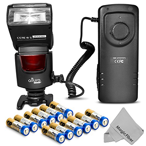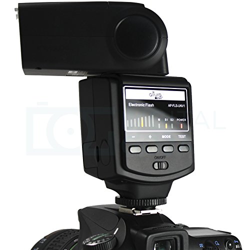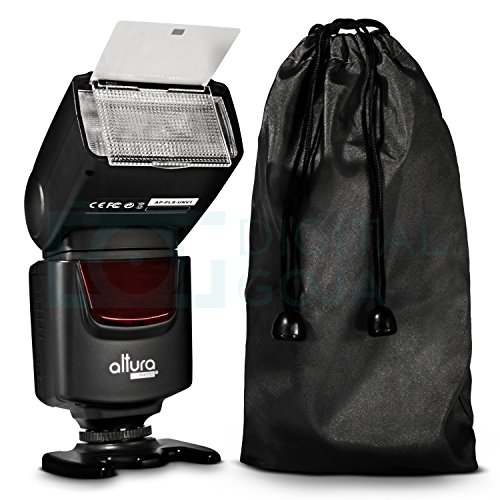 - Feature : Altura Photo® Professional Speedlite Flash (AP-UNV1) is a powerful manual flash with a high guide No. 38(m) / 125(ft). / Kit includes: Altura Photo Flash (AP-UNV1) + Flash Stand with Tripod Mount + Drawstring Pouch + External Flash Battery Pack + 12 AA GP Batteries + MagicFiber Microfiber Cleaning Cloth. / Compatible with NIKON FM FE FA EM FG F4 F5 F6 N8008 N4004 N50 N70 P6000 P7000 P7100 P7700 P7800 COOLPIX A D40 D50 D60 D70 D80 D90 D3000 D3100 D3200 D3300 D5000 D5100 D5200 D5300 D7000 D7100 D200 D300 D600 D610 D700 D750 D800 CANON AE-1 A-1 F-1 T50 T60 T70 T80 T90 XS XT T1i T2i T3i T4i T5i SL1 20D 30D 40D 50D 60D 70D 7D 5D 6D 1D POWERSHOT G SERIES PENTAX K1000 K KX ME MG LX P30 P50 and all cameras with a standard hot shoe mount. / 1-Year Limited Warranty. Altura Photo Authorized Dealer. / Backed with DigitalGoja 90-Day 100% Satisfaction Guarantee. If you're not happy with your flash for any reason, please contact us and we will take the product back for a full refund.