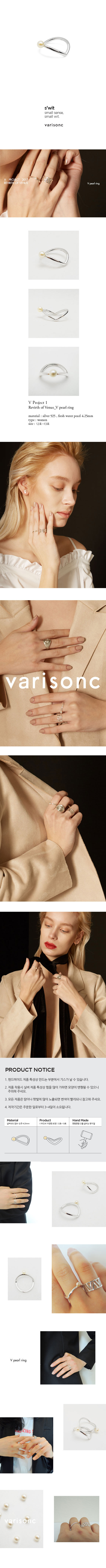 - 주문시 유의사항 : - 제작기간은 주문한 일로부터 3~4일이 소요됩니다. - 핸드메이드 제품 특성상 만드는 부분에서 기스가 날 수 있습니다. - 실버제품 특성상 힘을 많이 가하게 되면 모양이 변형될 수 있으니 주의해 주세요. - 제주 및 도서산간 지역은 추가배송비(3,000원)가 부과됩니다. Revirth of Venus_ VA ring 반짝이는 실버의 고유한 텍스처가 V컷팅을 만나 더욱 영롱하게 빛나는 반지입니다. V shape으로 디자인된 실버링 위에 천연 담수 진주가 있으며, 착용 시 이리저리 돌려보면 모두 다른 모양의 반지인 것처럼 다양한 모습으로 착용가능한 리버시블 아이템입니다.