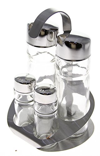 - Title : JustNile Cruet and Shaker Table Rack Set - 2+2 Stainless Steel Top/Glass Body