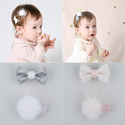 - Set of 2pcs baby hairpins, fur ball and bowknot style.