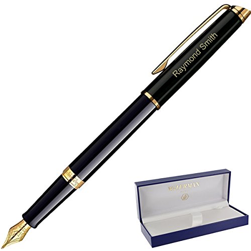 -. Binding : Office Product -. Brand : DaysP.R.Ing Pens -. Color : Black -. Feature : Free standard engraving included, up to 24 characters and spaces max. / Choose Block or Script font for engraving on the pen. Engraving shows up gold. / Luxury, fine writing pens. Lacquer Black Finish with 23 Krt Gold Appointments. / Waterman Hemisphere Fountain Pen with Medium Nib. Comes in Waterman Gift Pen Box. / Engraved in house at DaysP.R.Ing Pens and ships out fast in 1-2 business days. -. Label : Waterman -. Manufacturer : Waterman -. Model : GP-1140engraved -. MPN : GP-1140engraved -. PackageQuantity : 1 -. PartNumber : GP-1140engraved -. ProductGroup : Office Product -. ProductTypeName : WRITING_INSTRUMENT -. Publisher : Waterman -. Studio : Waterman -. Title : DaysP.R.Ing Pens - Personalized WATERMAN Hemisphere Fountain Pen Medium Nib - Black. Custom Engraved Fast, with gift case