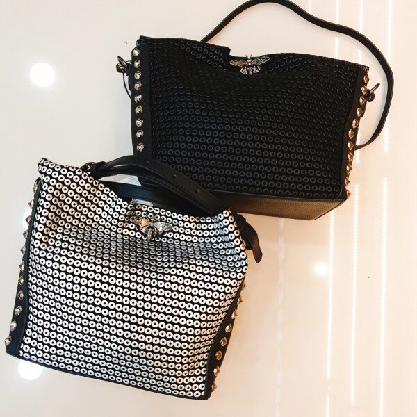 여왕벌장식이 고급스러운 크로스백 입니다.안쪽에 크로스겹용 파우치가 들어가있어 실용적입니다.서클패턴이 세련되고 고급스러우며 데일리백으로 손색이없습니다