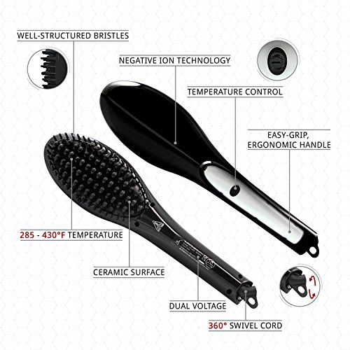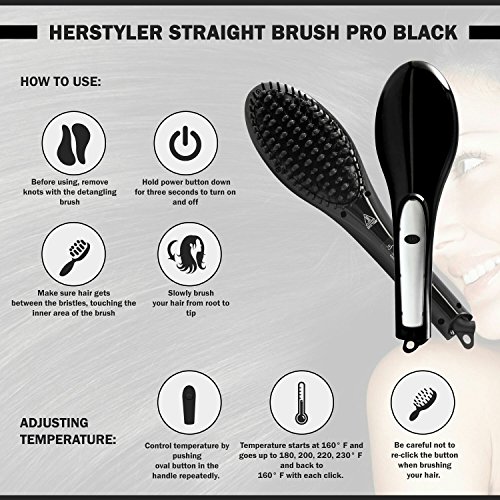 Herstyler Electric Ceramic Brush Hair Straightener, Dual Voltage, Black