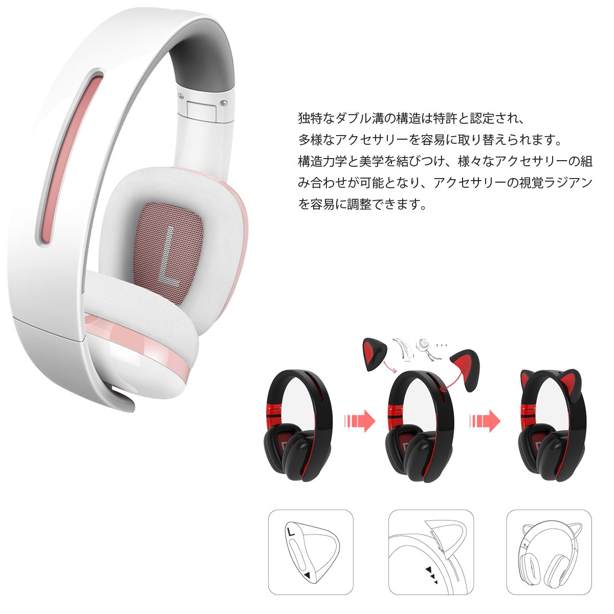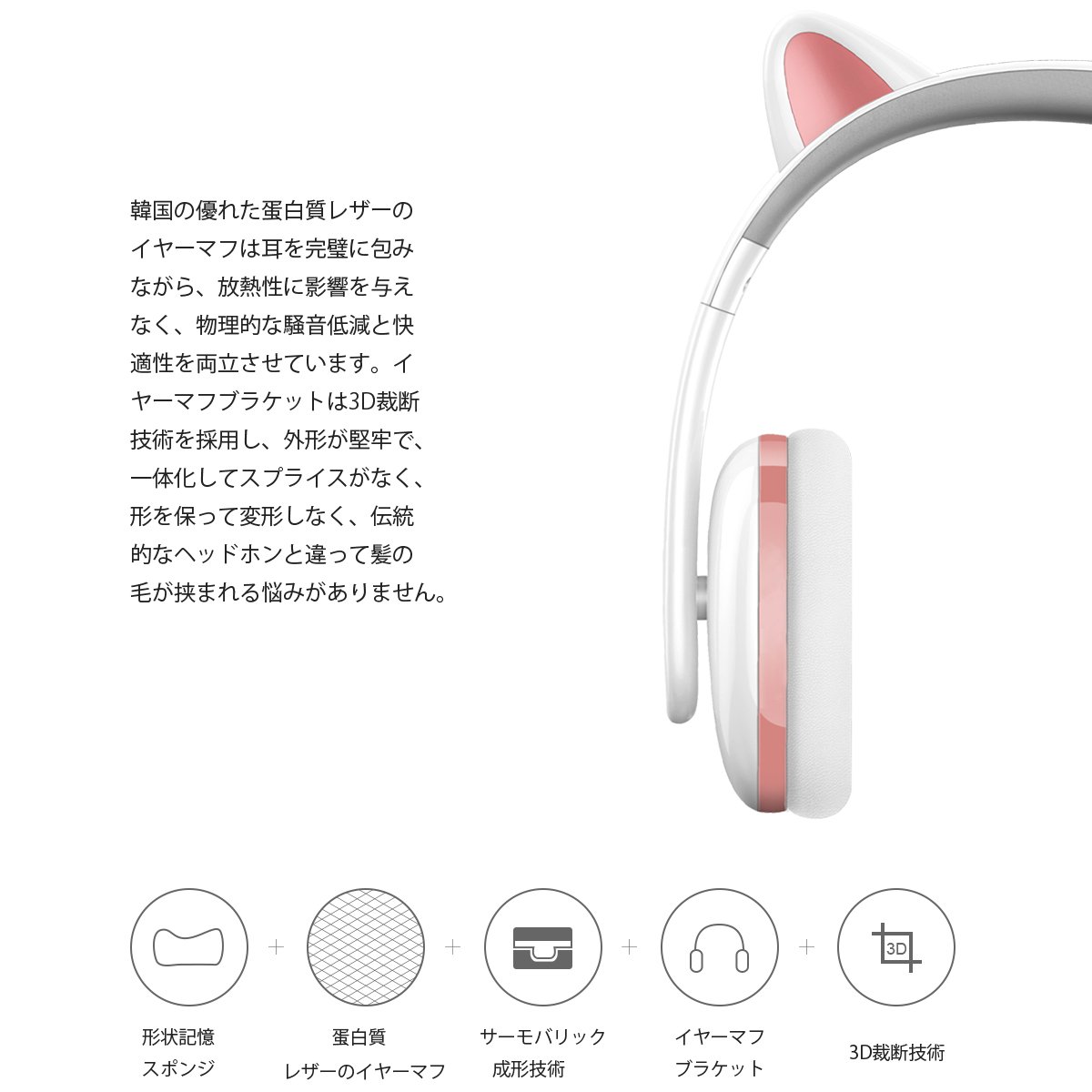 The earmuff bracket adopts 3D cutting technology, it has a solid outer shape, it has no splice, it does not deform while maintaining its shape, and there is no trouble that the hair is pinched unlike traditional headphones.