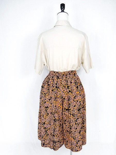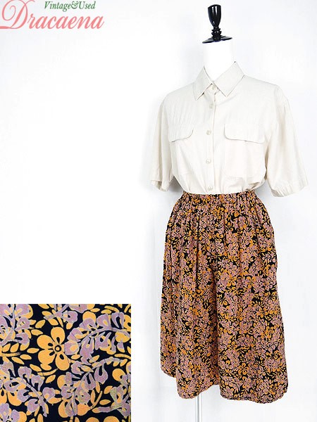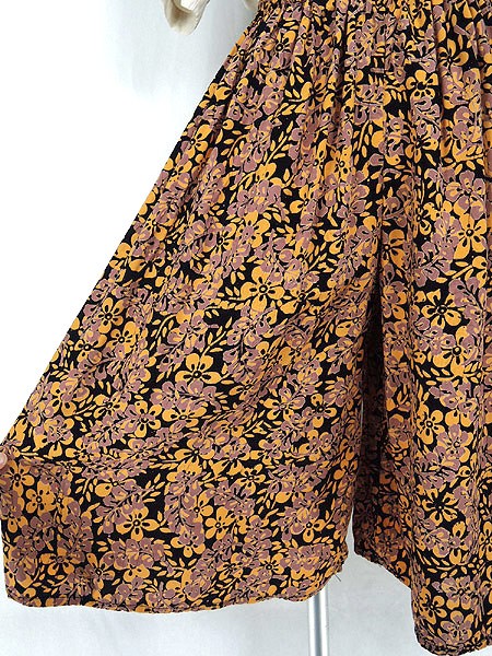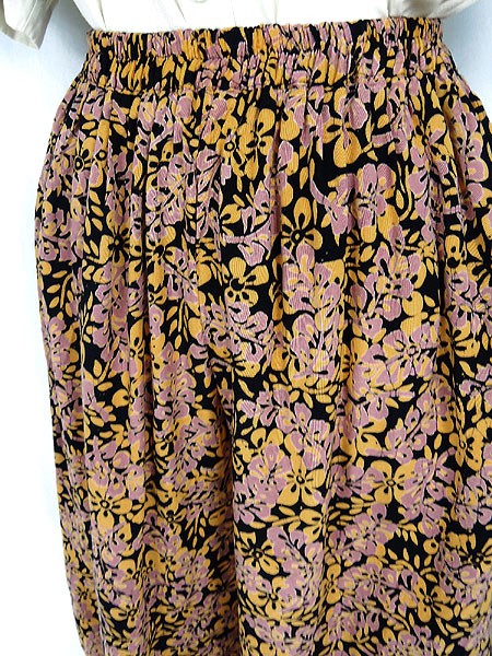 Ladies ブランド- カラー黒ベース・オレンジ・ダスティピンク メール便不可 コンディション★★★ 素材- 表記サイズ- スタッフコメントタグなし。コットン・レーヨンのような素材感です。 実寸サイズ 着丈 63 cm ウエスト 50cm 〜 80cm (20インチ〜31インチ) レングス(股下) 12 インチ(30 cm) 股上 35 cm 太もも幅 37 cm 裾幅 39 cm ※ウエスト・ヒップ以外は平置き採寸