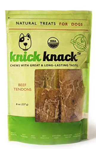 -. Title : Beef Tendons 8oz Natural Dog Treats, Fully Digestible, No Preservatives or Additives, Low Fat High Protein Single Ingredient Dog Dental Chews, by Knick Knack USDA-Approved