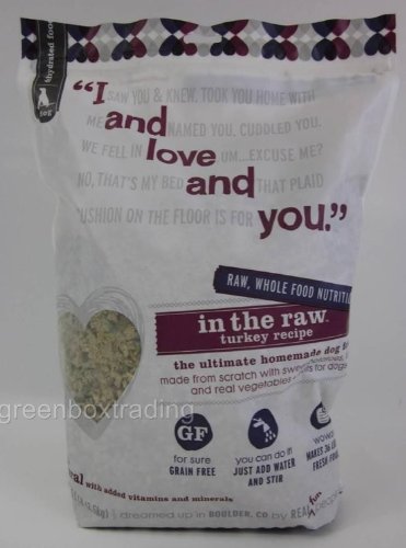 -. Binding : Misc. -. Brand : I and love and you -. EAN : 0818336010354 -. Label : I and Love and You -. Manufacturer : I and Love and You -. MPN : F02060 -. NumberOfItems : 3 -. PackageQuantity : 3 -. PartNumber : F02060 -. ProductGroup : Grocery -. ProductTypeName : GROCERY -. Publisher : I and Love and You -. Studio : I and Love and You -. Title : I and Love and You In The Raw Turkey Recipe Dog Food, 5.5 Pound -- 3 per case. -. UPC : 818336010354
