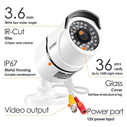 -. Title : ZOSI 4 Pack HD 960H 1000TVL Security Camera 1/3" Color CMOS 36 IR-LEDs Day/Night Weatherproof Surveillance Bullet Camera Night Vision 100ft(30m)