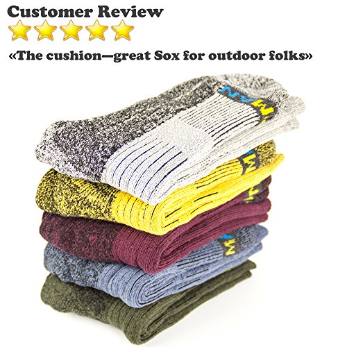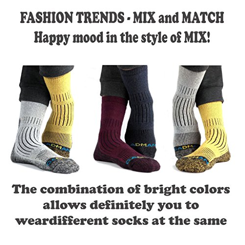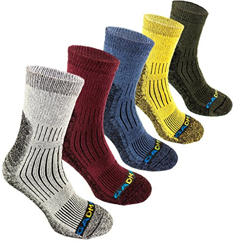 -. Binding : Apparel -. Brand : GADMAN -. Color : Multicoloured -. Department : mens -. Feature : INNOVATIVE RELIABLE STRUCTURE: The hiking socks have areas for effective removal of moisture and heat during long-term movement, reinforced Toe and Heel / EASY TO CHOOSE SIZE: Small, Medium or Large for Men's socks and Women's socks on Everyday; US MENS SHOE SIZE: S (6½ - 7½), M (8 - 9½), L (10 - 11); They retain elasticity when stretched / CUSHION SOCKS is PERMANENT AND COMPLEX FOOT PROTECTION: from lacing pressure, scrapes, blisters and calluses, impact loads and from Sweaty Feet when running and walking / FASHION TRENDS - MIX and MATCH: The combination of bright colors allows definitely you to wear different trekking socks at the same time; Five species - many options for you and your friends; Colors: light gray, yellow-gray, dark gray-blue, dark khaki, dark cherry; They are a Soft & Comfortable Colored Useful Gift with Padded Relief / EVERYDAY USE: The Men's Hiking Socks are useful On Vacation or at Work, in the Garden by Foot or in the Basket of the Balloon; These Padded hiking socks are thicker than your regular socks, to provide the perfect mix of cushioning and breathability for Camping, Climbing and Fishing Year Round -. IsAdultProduct : 0 -. NumberOfItems : 10 -. ProductGroup : Apparel -. ProductTypeName : SOCKSHOSIERY -. Title : Hiking Trekking Multi Performance Cotton Cushion Socks by GADMAN for Outdoor Sports 5 Pairs