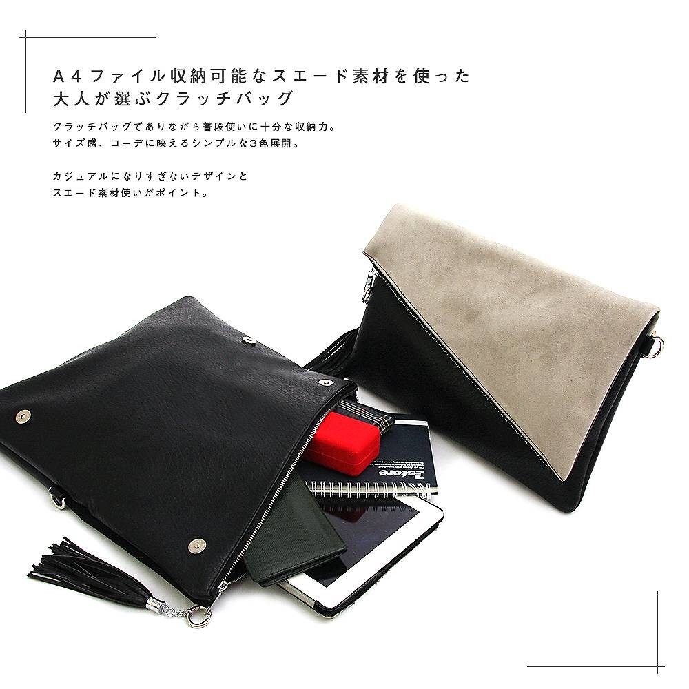 | 商品説明 | ”スエード素材を使った大人仕様のクラッチバッグ” ”REGISTA”の新作はバッグは、滑らかなスエード素材を使った、 高級感とモードな雰囲気をあわせ持つ大人仕様のクラッチバッグ。 デザインポイントのタッセルは取り外したり、場所を変えてつけることが可能。 気分や好みに合わせていろいろと楽しめる仕様。 機能面では横幅をしっかりととっており、A4ファイルが横に収まるサイズ感 やショルダーストラップが付属されているので肩掛けにもできる2WAY仕様など、使い勝手も抜群。 大人が選ぶクラッチバッグは、カジュアルになりすぎないデザインと素材使いがポイント。 |