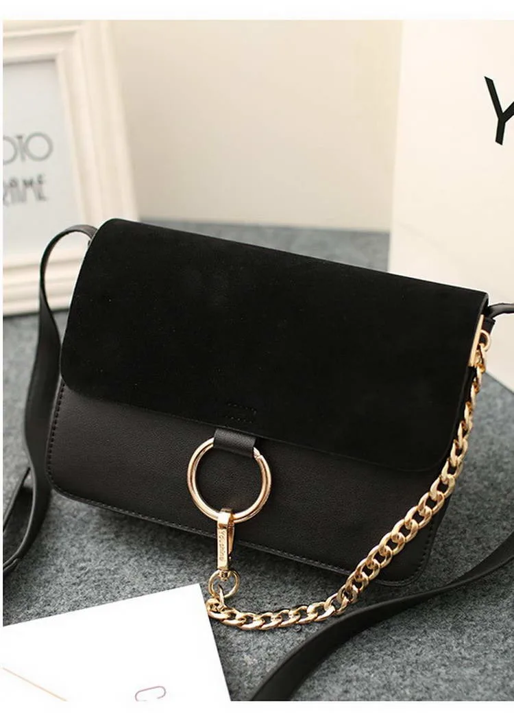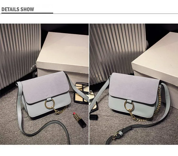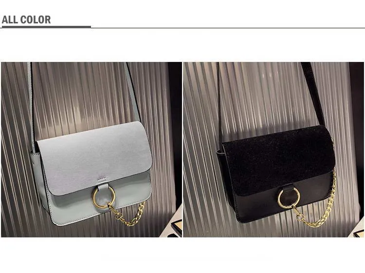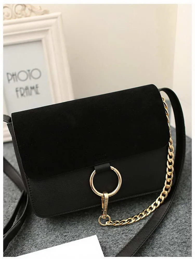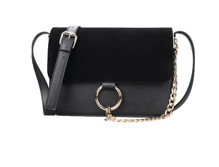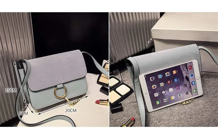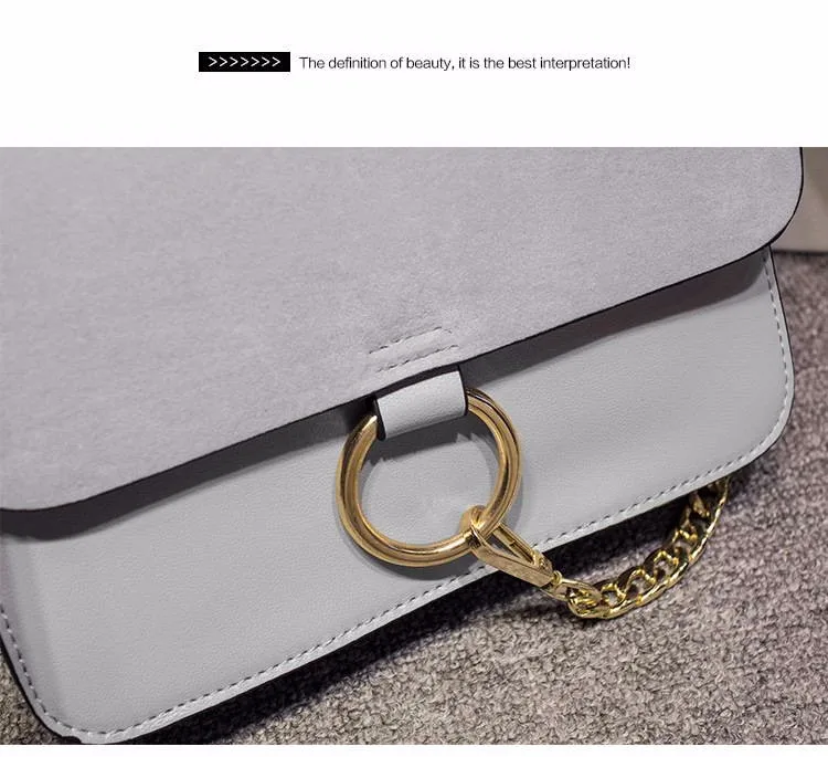 新しい到着金属リングデザイン女性バッグつや消しpuレザー女性のメッセンジャーバッグファッションスタースタイルクロスボディバッグ