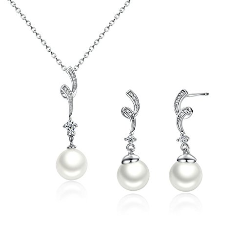 -. Title : Bamoer S925 Elegant Pearl Jewelry Sets For Women エレガントパールセットアクセサリー シルバースタッドピアス ネックレス2点セット クリア色CZ付