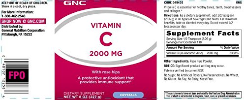-. Title : GNC Vitamin C 2000 MG - Crystals 227 g