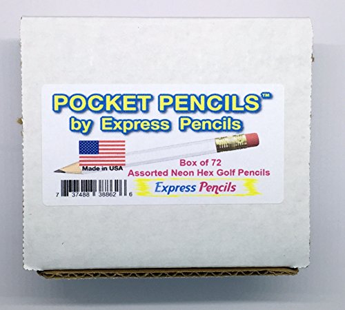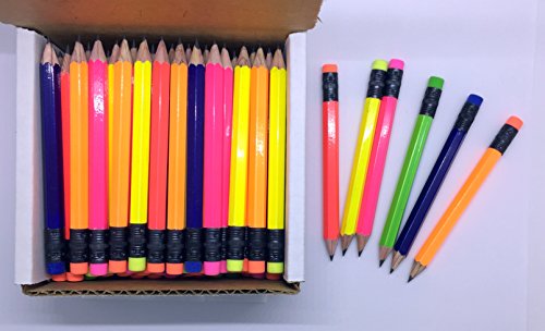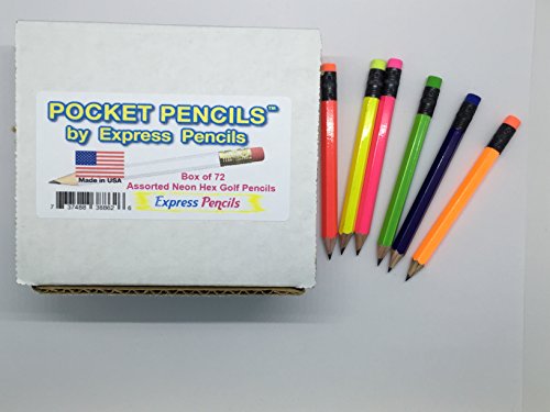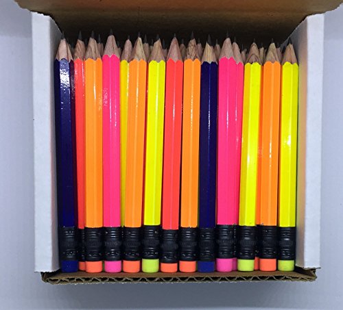 Half Pencils with Eraser - Golf, Classroom, Pew, Short, Mini, Small. Church, Non Toxic - Hexagon, Sharpened, #2 Pencil, Color - Assorted Neon Colors, Box of 72 (1/2 Gross) Golf Pocket Pencil ™