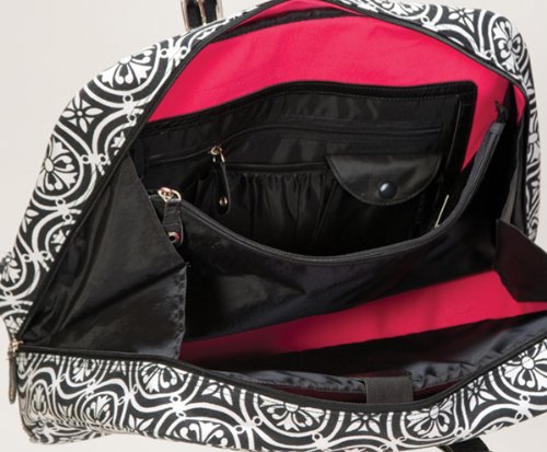 ReleaseDate : 2013-08-19 Studio : Sassy Caddy, Inc. Publisher : Sassy Caddy, Inc. Binding : Sports Product Description Feel and look fabulous while carrying your laptop, accessories and other essentials to and from home in our Sassy Caddy, Inc. Messenger Bag. We use attractive, stylish and durable fabrics on our bags that are water resistant, stain resistant and have up to 1000 hours of UV protection. Dual adjustable faux snake skin leather straps, large enough to fit over your shoulder. Plus, faux snake skin leather base for extra protection and durability. Padded pocket for computers up to a 15" diameter. There are also 5 interior pockets for your wallet, pens, phone. 0