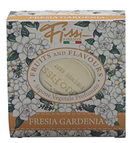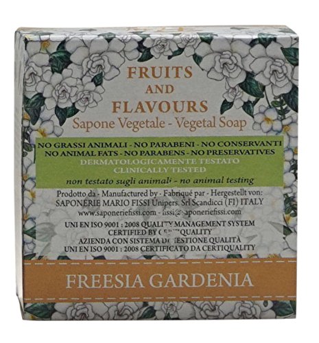 Saponerie Mario Fissi: "Fresia Gardenia" Perfumed Vegetal Soap, Freesia and Gardenia Scent, "Fruits and Flavours" Line 3.5 Ounce (100g) Package Pack of 4 [ Italian Import ]