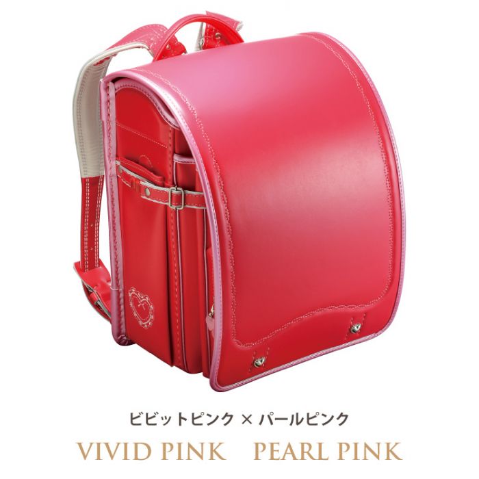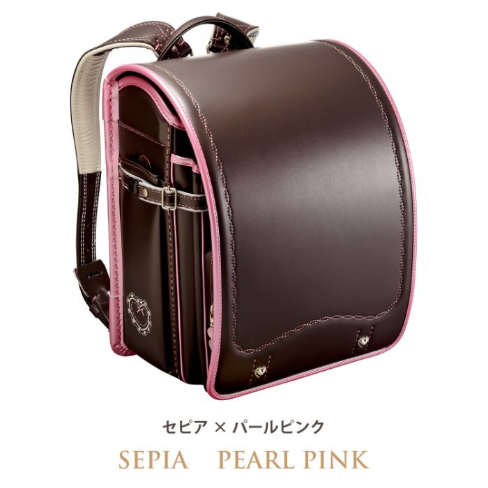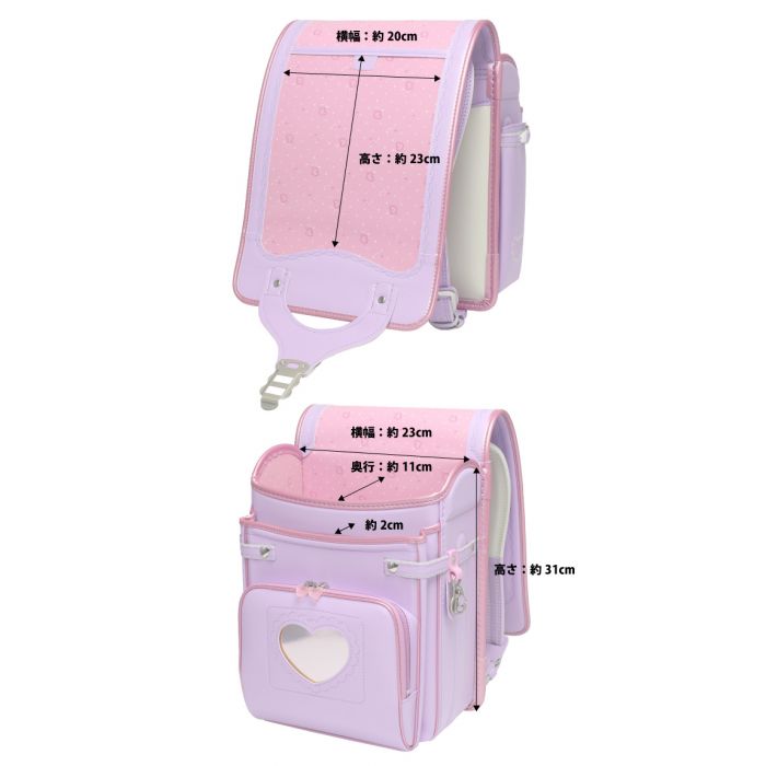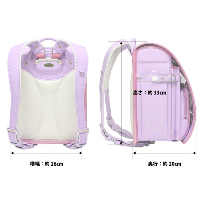 반짝반짝 펄이 붙이이라고 레이스조의 하트 자수가 멋진 심플 이지만 귀여운 소녀용 란도세루(초등학생이 어깨에 매는 가방).