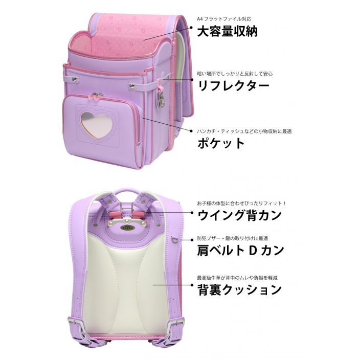 원본상품명: ランドセル 女の子 2018 シュガ?プリンセス MH504JI5 モリちゃんランちゃん 刺しゅう入り A4サイズ?? ワンタッチロック ?習院型 日本製 ラン活