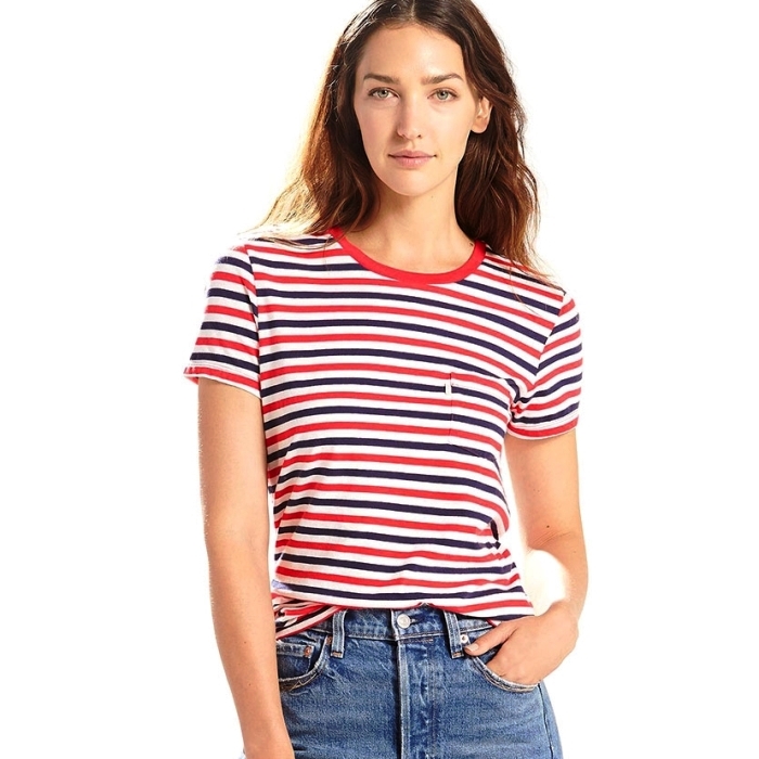 상품명 | 여성 스트라이프 포켓 반팔 티셔츠 |