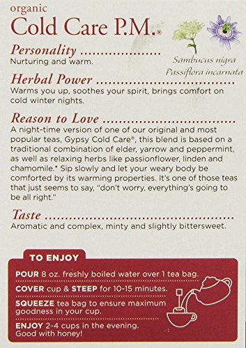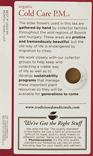 -. Binding : Health and Beauty -. Brand : Traditional Medicinals -. Department : Health and Beauty>Health and Wellness -. EAN : 0032917000439 -. Feature : Traditional Medicinals -. IsAdultProduct : 0 -. Label : Traditional Medicinals -. LegalDisclaimer : These statements have not been evaluated by the Food & Drug Administration. This products is not intended to diagnose, cure, mitigate, treat, or prevent any disease. -. Manufacturer : Traditional Medicinals -. Model : TCCC -. MPN : 090750-1 -. NumberOfItems : 1 -. PackageQuantity : 1 -. PartNumber : 090750-1 -. ProductGroup : Health and Beauty -. ProductTypeName : HEALTH_PERSONAL_CARE -. Publisher : Traditional Medicinals -. Size : 16 -. Studio : Traditional Medicinals -. Title : TRADITIONAL MEDICINALS HERB TEA,OG1,COLD CARE PM, 16 BAG -. UPC : 032917000439