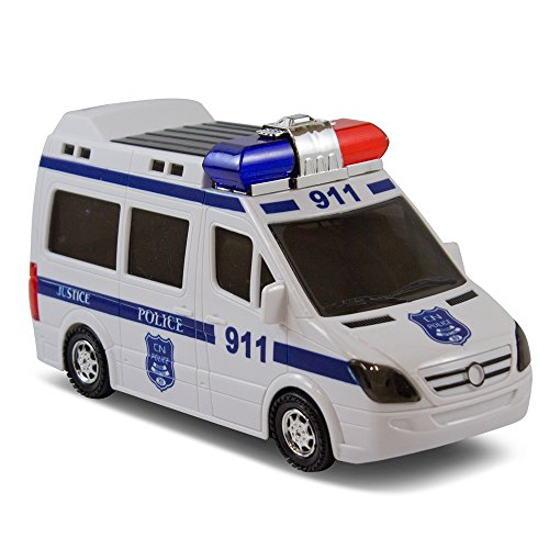 -. Feature : THRILLING FEATURES: This police car is fun and attractive toy. This big model vehicle looks like in real life switch it on and its motion will begin. Car will ride front, back side or change its direction if needed. The most exciting part is its beautiful flashing red, blue light and siren sounds. / GENDER NEUTRAL: The gender neutral design makes this toy ideal for households with both brothers and sisters. / AGES 12 MONTHS & UP: Young and older kids will all love this entertaining Police toy car. Little ones will enjoy chasing after it. Older kids will love to play with such a fun and detail toy . / BEST GIFT: Great present for kids that enjoy playing with police cars or music. Reward them on their birthdays, Holiday or Christmas or just cause the deserve it.