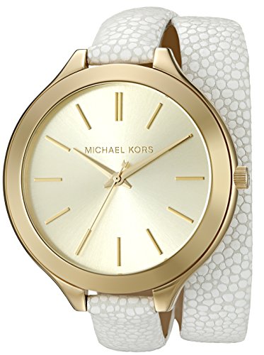 -. Title : Women's 'Slim Runway' Quartz Stainless Steel and White Leather Casual Watch (Model: MK2477)