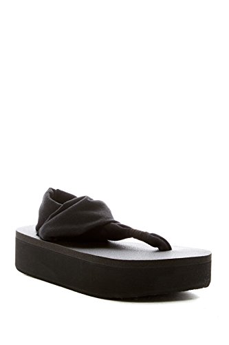 Sanuk Yoga Sling 2 Platform Women Open Toe Canvas Black Thong Sandal